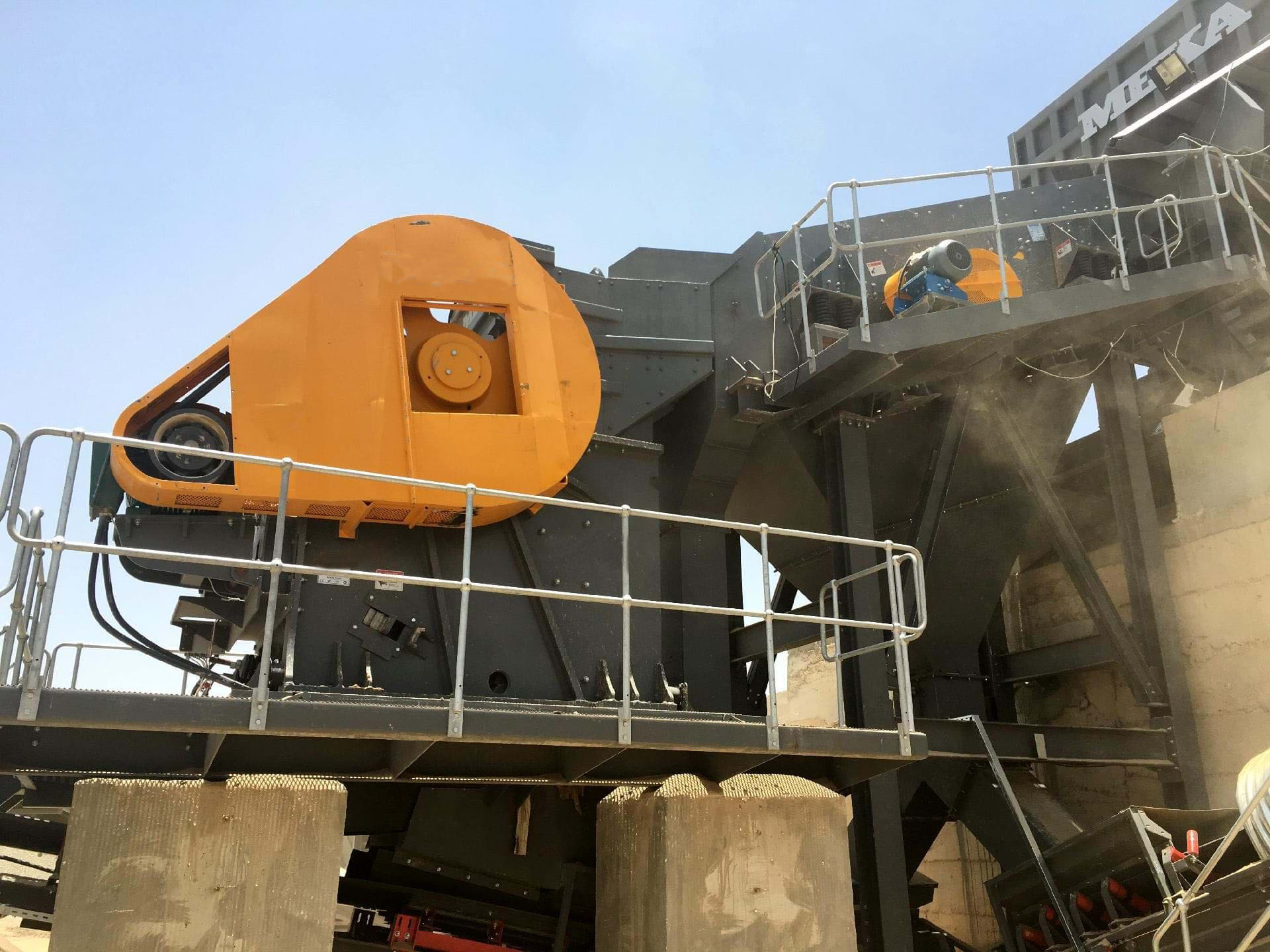 除了每班檢查的上述事項,還應每周對設備進行全方面“體檢”,及時了解圓錐移動破碎站設備其他部件的情況。具體内容包括:檢查配套振動篩的篩網、篩箱情況,檢查并記錄篩網的磨損情況;檢查轉運皮帶機,有必要時及時張緊;檢查設備的所有管路,避免機身振動引起的漏油問題;檢查設備電控系統以及電器連鎖等問題,以确保設備可以正常操控;另外還應檢查液壓裝置的蓄能器壓力,以保證液壓系統正常運轉。