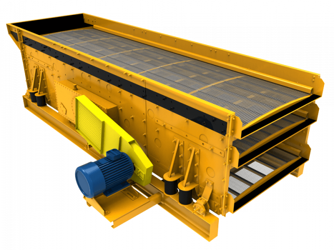 電動機經三角帶使激振器偏心塊産生高速旋轉。運轉的偏心塊産生很大的離心力,激發篩箱産生一定振幅的圓運動,篩上物料在傾斜的篩面上受到篩箱傳給的沖量而産生連續的抛擲運動,物料與篩面相遇的過程中使小于篩孔的顆粒透篩,從而實現分級。