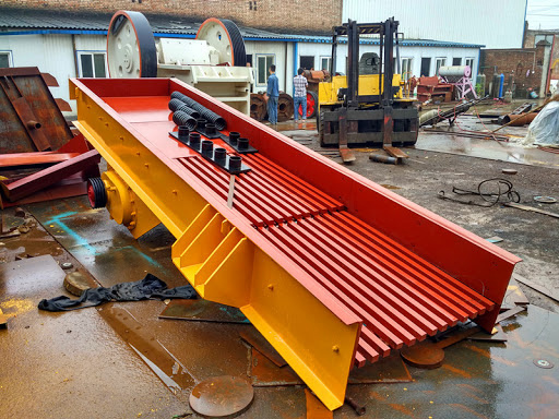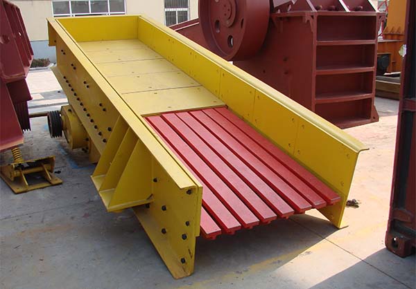 振動給料機主要用于粗碎破碎機前連續、均勻給料,同時可篩分細料,使破碎機能力增大。該機采用雙偏心軸激振器的結構特點,保證設備能承受大塊物料下落的沖擊,給料能力大。在生産流程中可以把塊狀、顆粒狀物料從貯料倉中均勻、定時、連續地送到受料裝置中去,從而防止受料裝置因進料不均而産生死機的現象,延長了設備使用壽命。給料機可分爲鋼闆結構和篦條結構,鋼闆結構的給料機多用于砂石料生産線,将物料全部均勻地送入破碎設備;篦條結構的給料機可對物料進行粗篩分,使系統在配制上更經濟合理,在破碎篩分中已作爲必不可少的設備。因而該機廣泛應用于冶金、煤礦、選礦、建材、化工、磨料等行業的破碎、篩分聯合設備中。